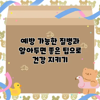 예방 가능한 질병은 생활 습관 개선과 조기 대응으로 충분히 관리할 수 있습니다. 위에서 언급한 여러 가지 예방 팁을 통해 여러분의 건강을 지킬 수 있기를 바랍니다.